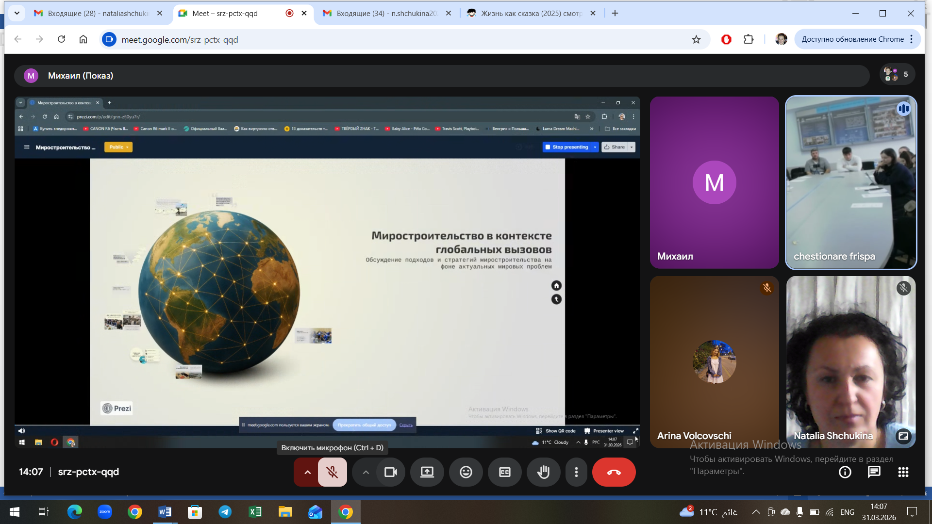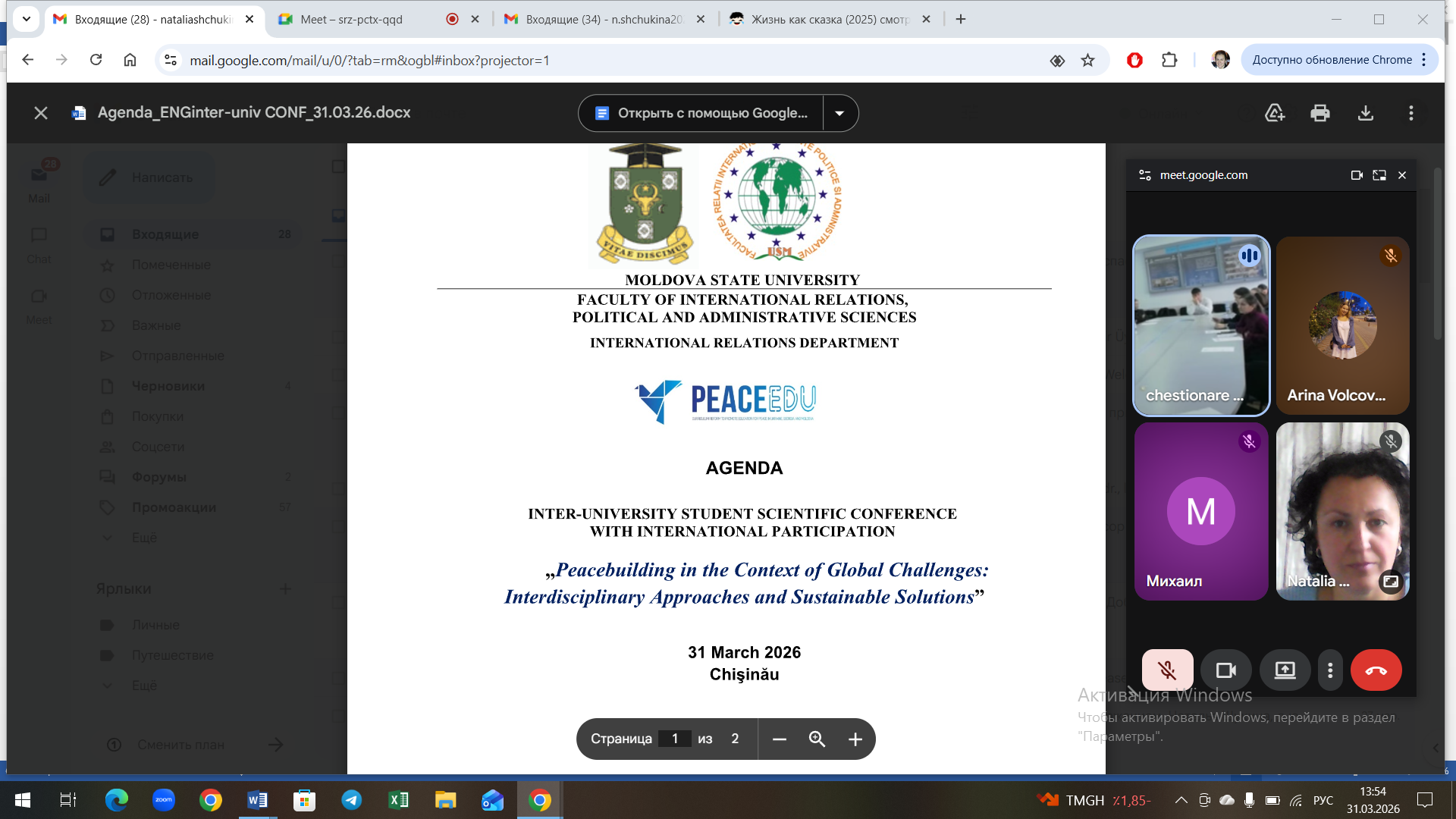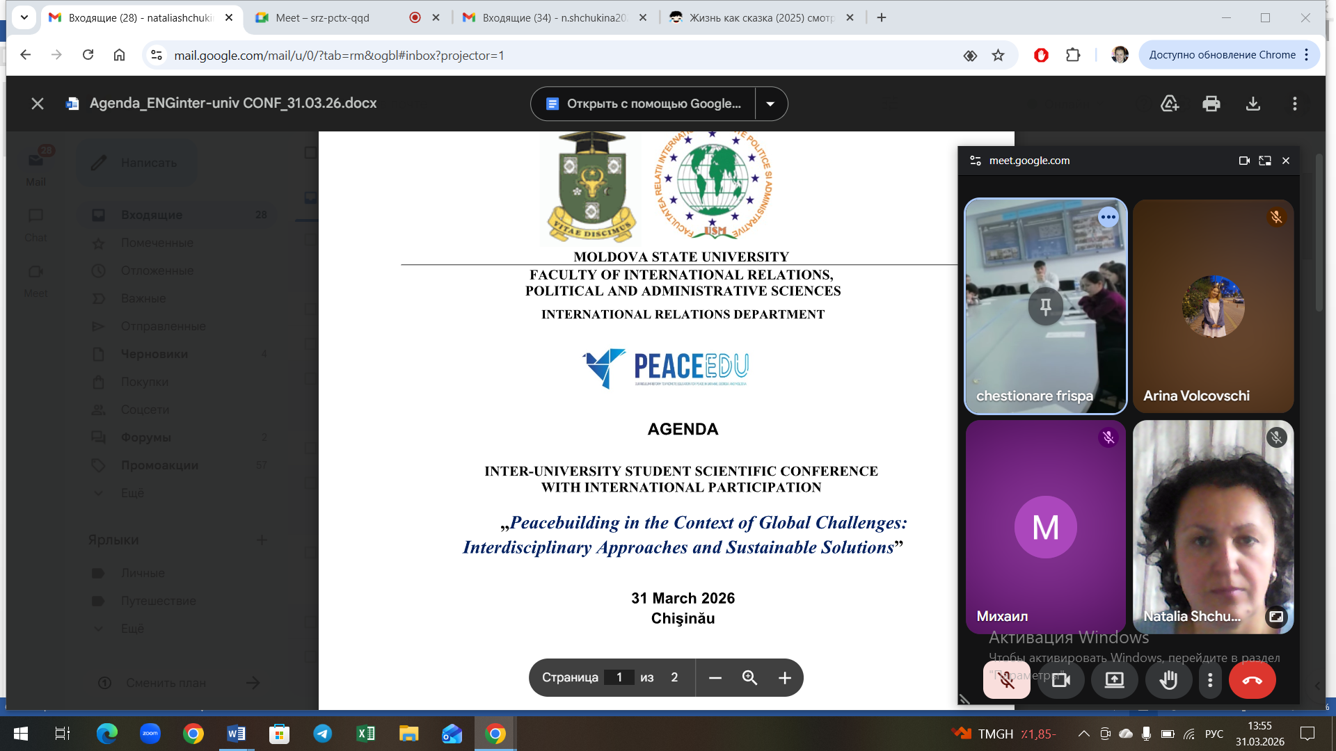 31 марта 2026 года на базе Молдавского государственного университета состоялась Межвузовская студенческая научная конференция с международным участием на тему: «Peacebuilding in the Context of Global Challenges: Interdisciplinary Approaches and Sustainable Solutions» (Миростроительство в контексте глобальных вызовов: